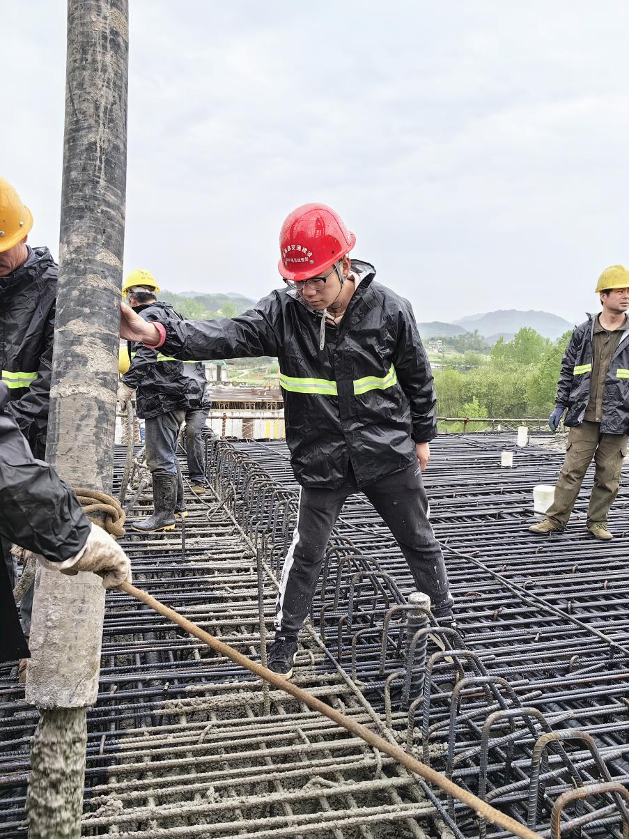 圖:劉邦在砼澆筑現(xiàn)場(chǎng)工作