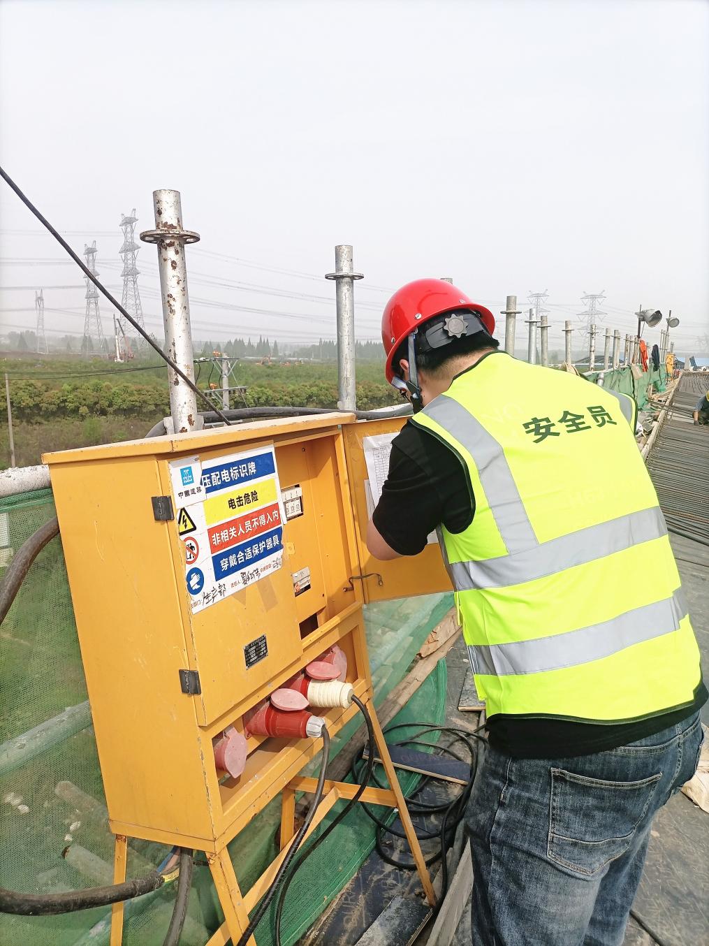 圖:孫錦逸在現(xiàn)場(chǎng)檢查安全用電情況