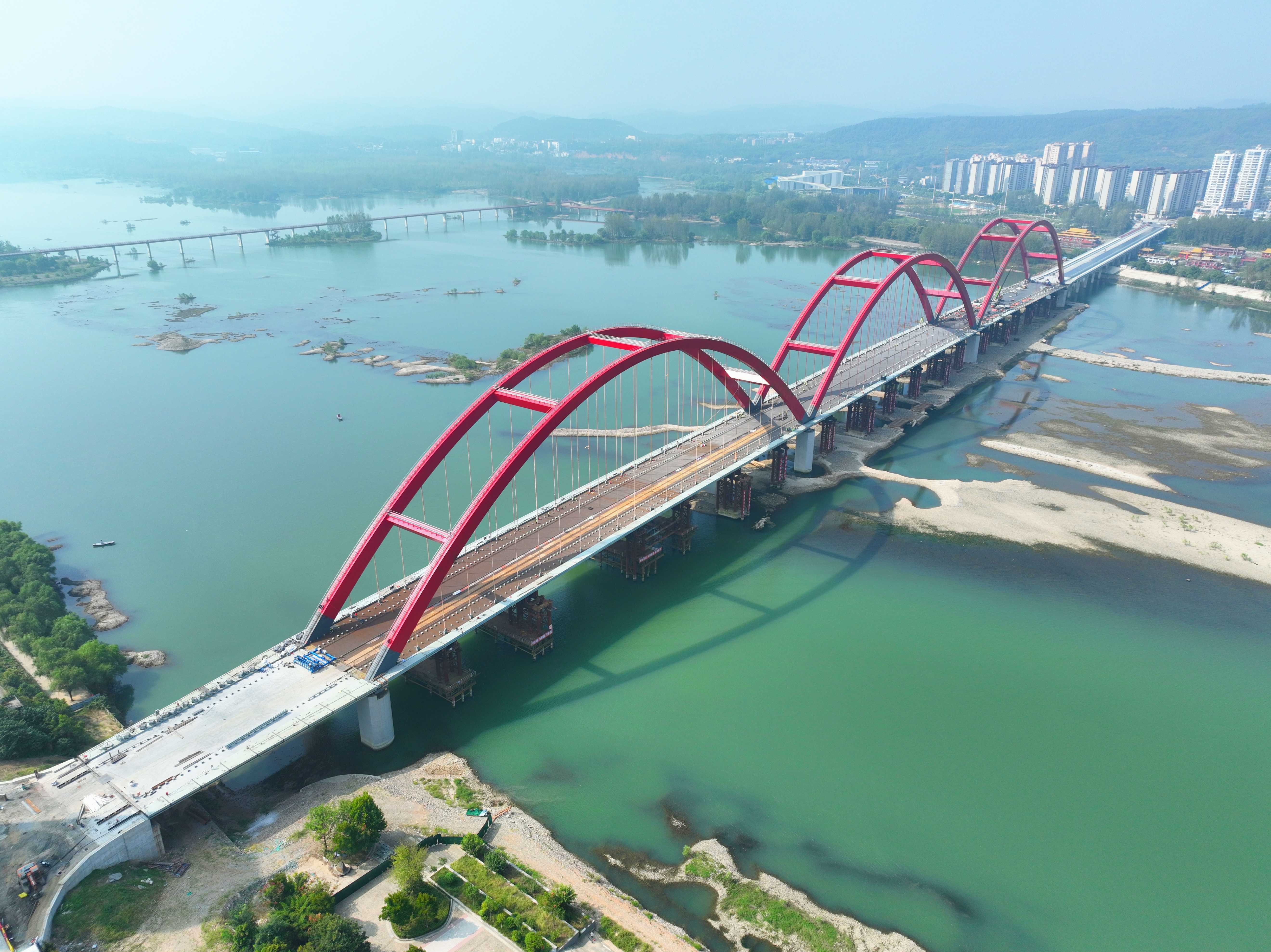 是國內最長的三跨連續(xù)鋼箱系桿拱橋。