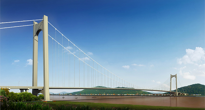 黃石棋盤洲長江公路大橋是武漢城市圈高速公路的重要組成部分,該項(xiàng)目起點(diǎn)位于陽新縣太子鎮(zhèn)樟樹灣村,順接擬建的黃咸高速公路大冶至陽新段,穿過規(guī)劃棋盤洲港區(qū)后跨越長江進(jìn)入黃岡市蘄春縣境內(nèi),在韓家灣與G50滬渝高速全互通相交,終點(diǎn)接滬渝高速。路線全長22.237km,黃石側(cè)接線14.247km,長江大橋3.728km,黃岡側(cè)接線4.262km。本項(xiàng)目投資估算總金額為39.363億元,建設(shè)總工期為48個月。2014年10月,湖北路橋中標(biāo)棋盤洲長公路大橋建設(shè)工程項(xiàng)目,2020年6月5日,大橋?qū)崿F(xiàn)順利合龍。