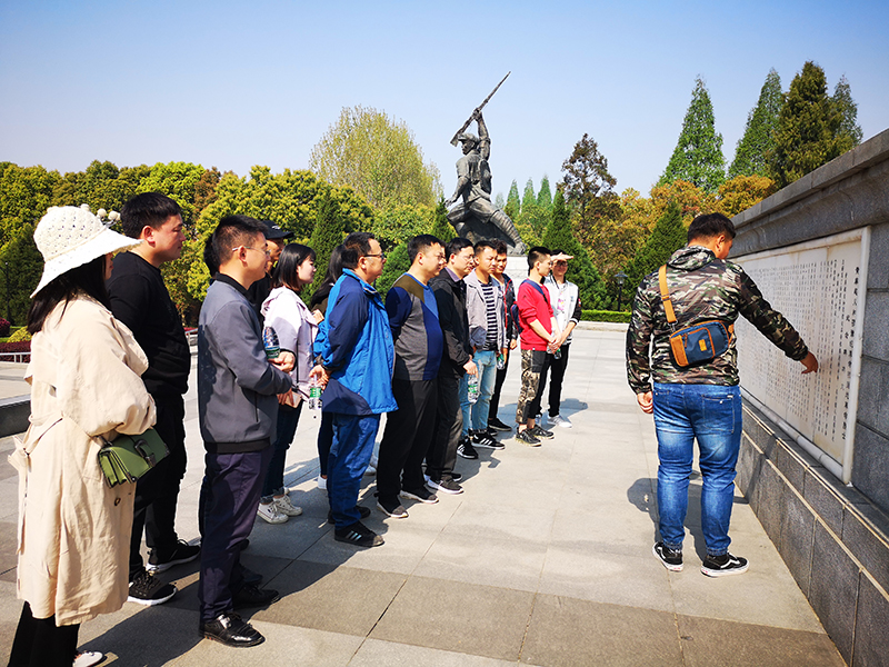 7日上午,項(xiàng)目部一行二十余人懷著無(wú)比崇敬的心情來(lái)到教育活動(dòng)的第一站——黃麻起義和鄂豫皖蘇區(qū)革命烈士陵園。邁過(guò)大門(mén),穿過(guò)一片林蔭大道,來(lái)到巍然聳立的烈士紀(jì)念碑前,大家瞻仰先烈,認(rèn)真閱讀碑文,感受革命先驅(qū)為家、為國(guó)的大無(wú)畏犧牲精神。“小小黃安,人人好漢。銅鑼一響,四十八萬(wàn)。男將打仗,女將送飯”,紀(jì)念碑背面這首簡(jiǎn)單的童謠更是敲擊著我們的內(nèi)心:是無(wú)數(shù)的烈士用他們的生命和鮮血換來(lái)我們今天的幸福生活,我們還有什么理由不珍惜?!