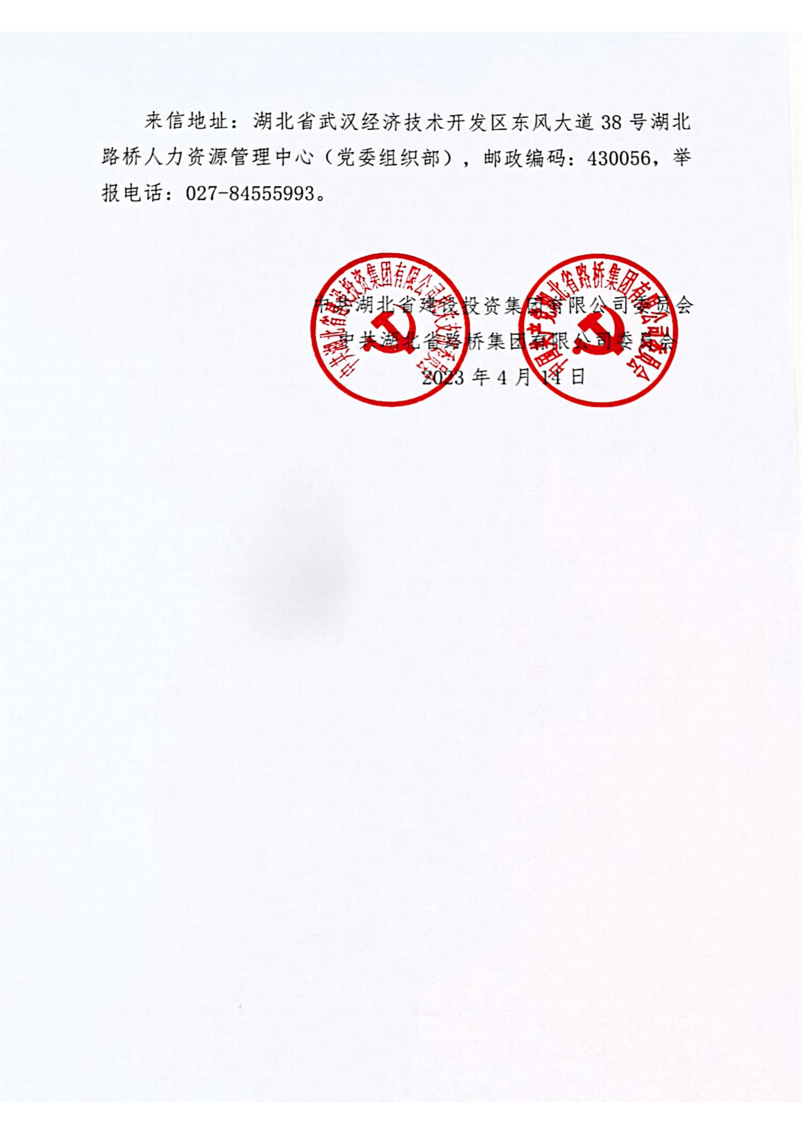 湖北省路橋集團有限公司擬提拔任用管理人員任前公示