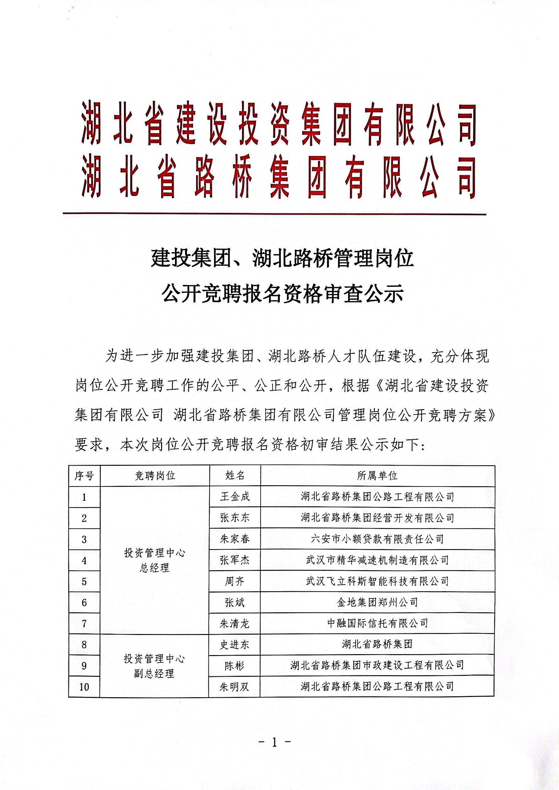 建投集團、湖北路橋管理崗位公開競聘報名資格審查公示