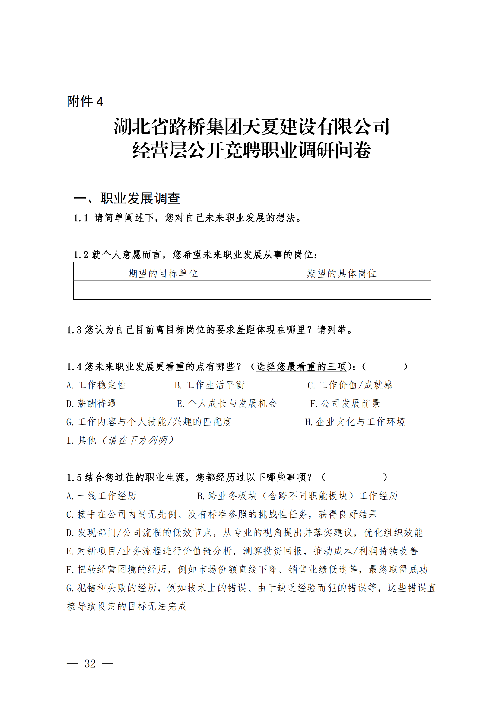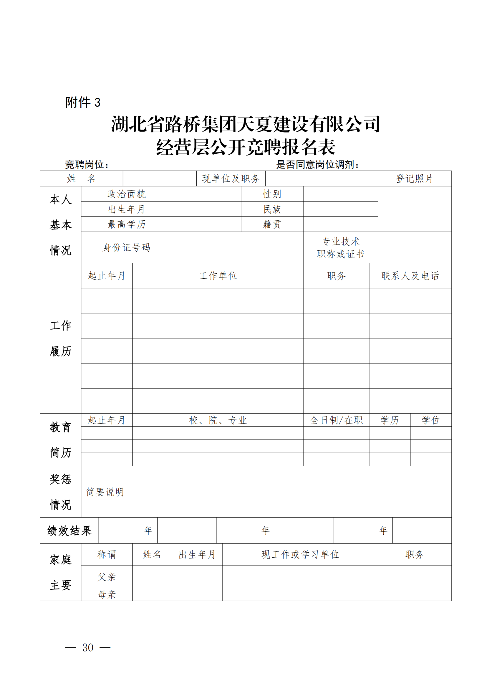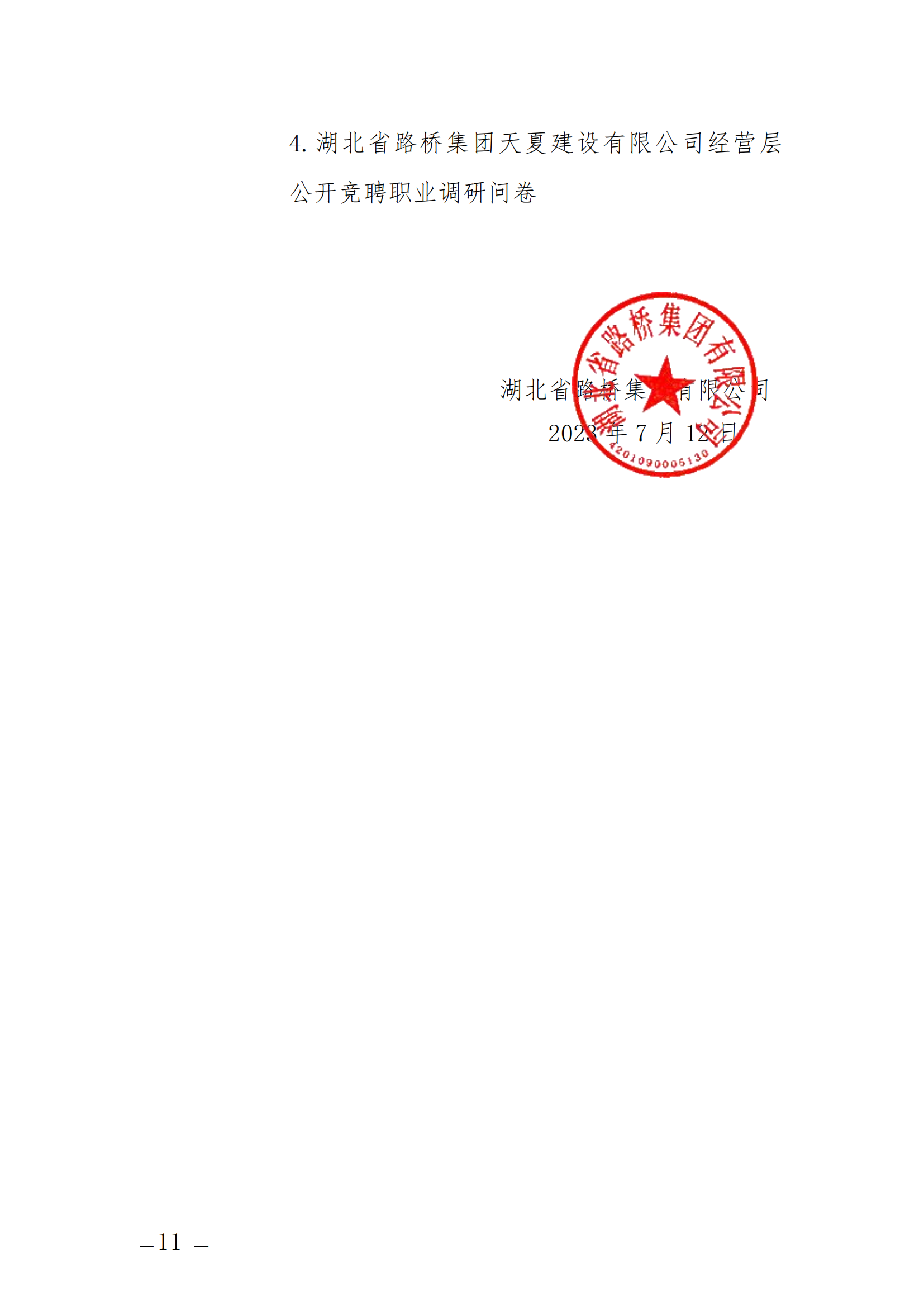 關于開展湖北省路橋集團天夏建設有限公司經營層團隊公開競聘的通知