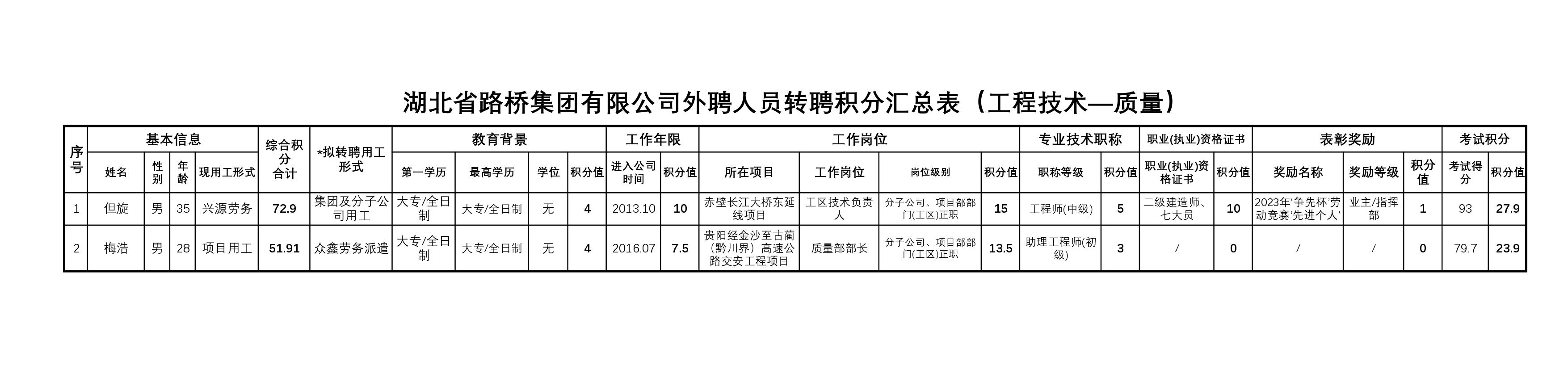 湖北省路橋集團有限公司2023年擬轉聘人員公示