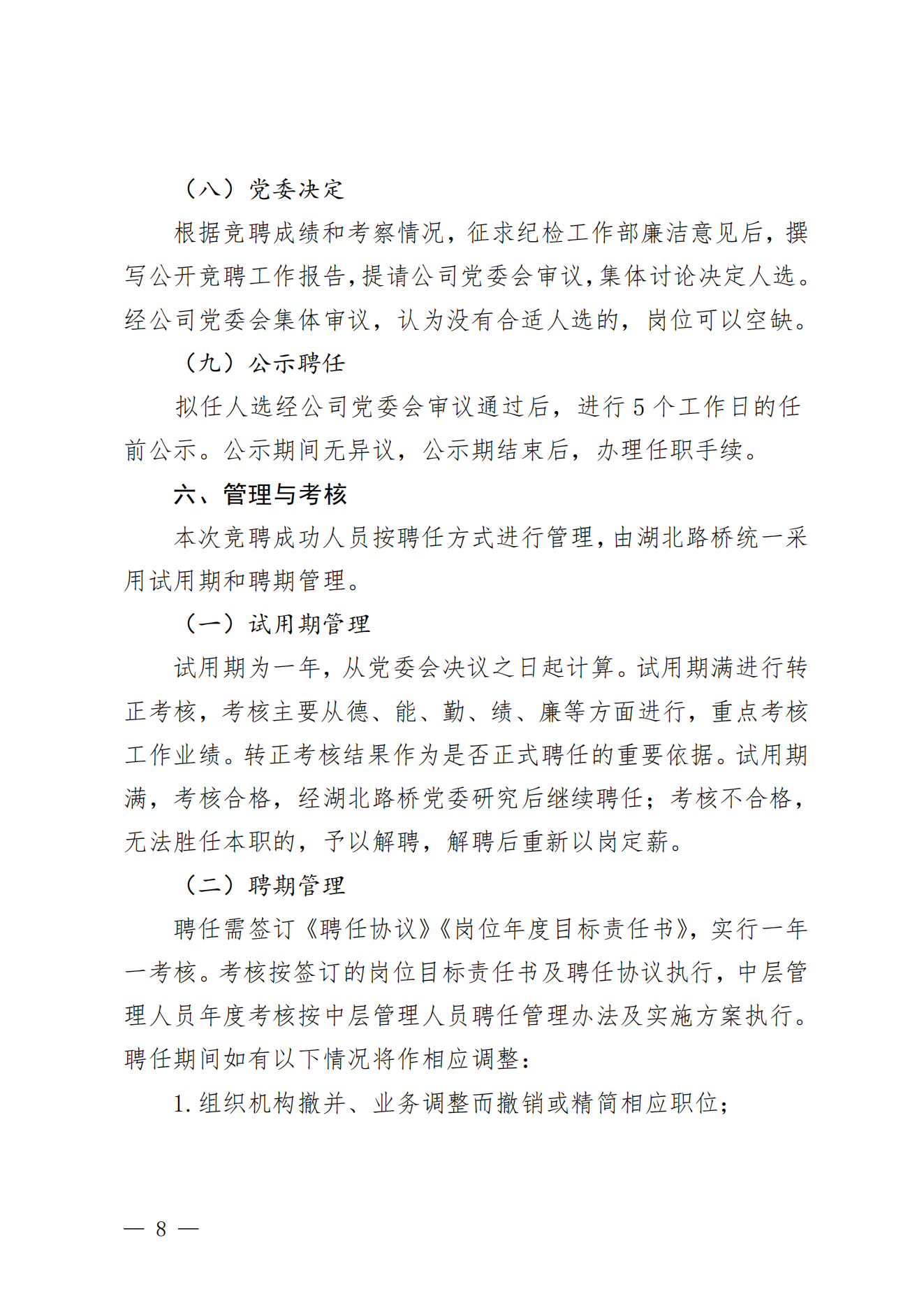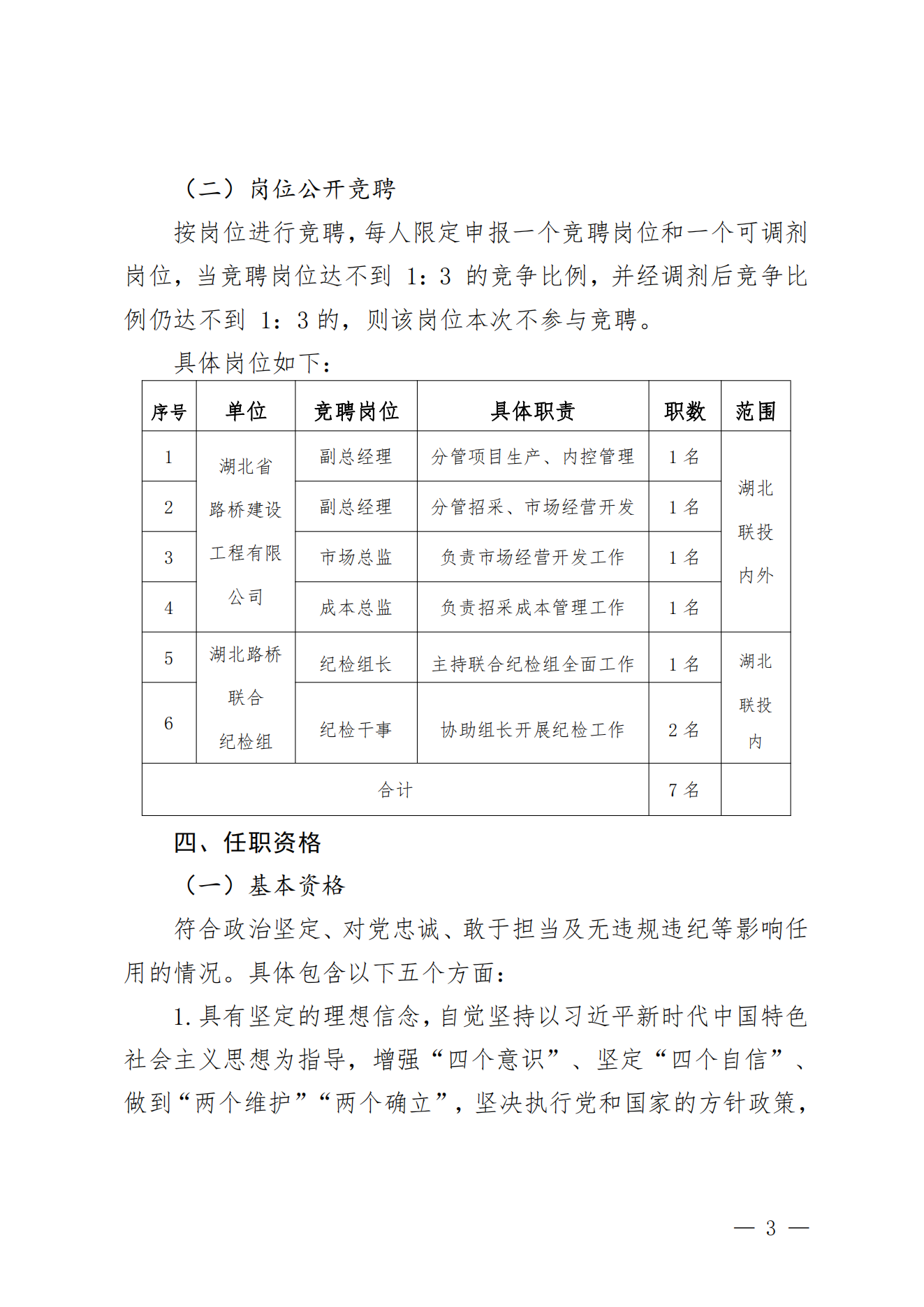 人才強企丨湖北省路橋集團有限公司下屬橋隧公司經營層團隊組閣競聘考察對象的公告