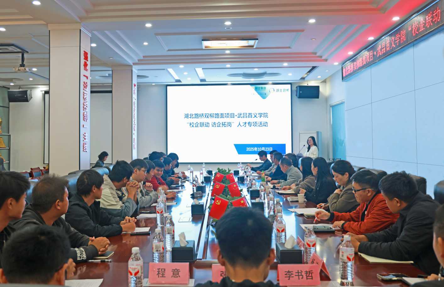 為深化產(chǎn)教融合、推動(dòng)校企協(xié)同育人,10月23日下午,湖北路橋雙柳長江大橋路面項(xiàng)目部聯(lián)合武昌首義學(xué)院開展“校企聯(lián)動(dòng) 訪企拓崗”人才專項(xiàng)活動(dòng),與武昌首義學(xué)院校企合作處處長、教務(wù)處副處長周自倫等座談交流。