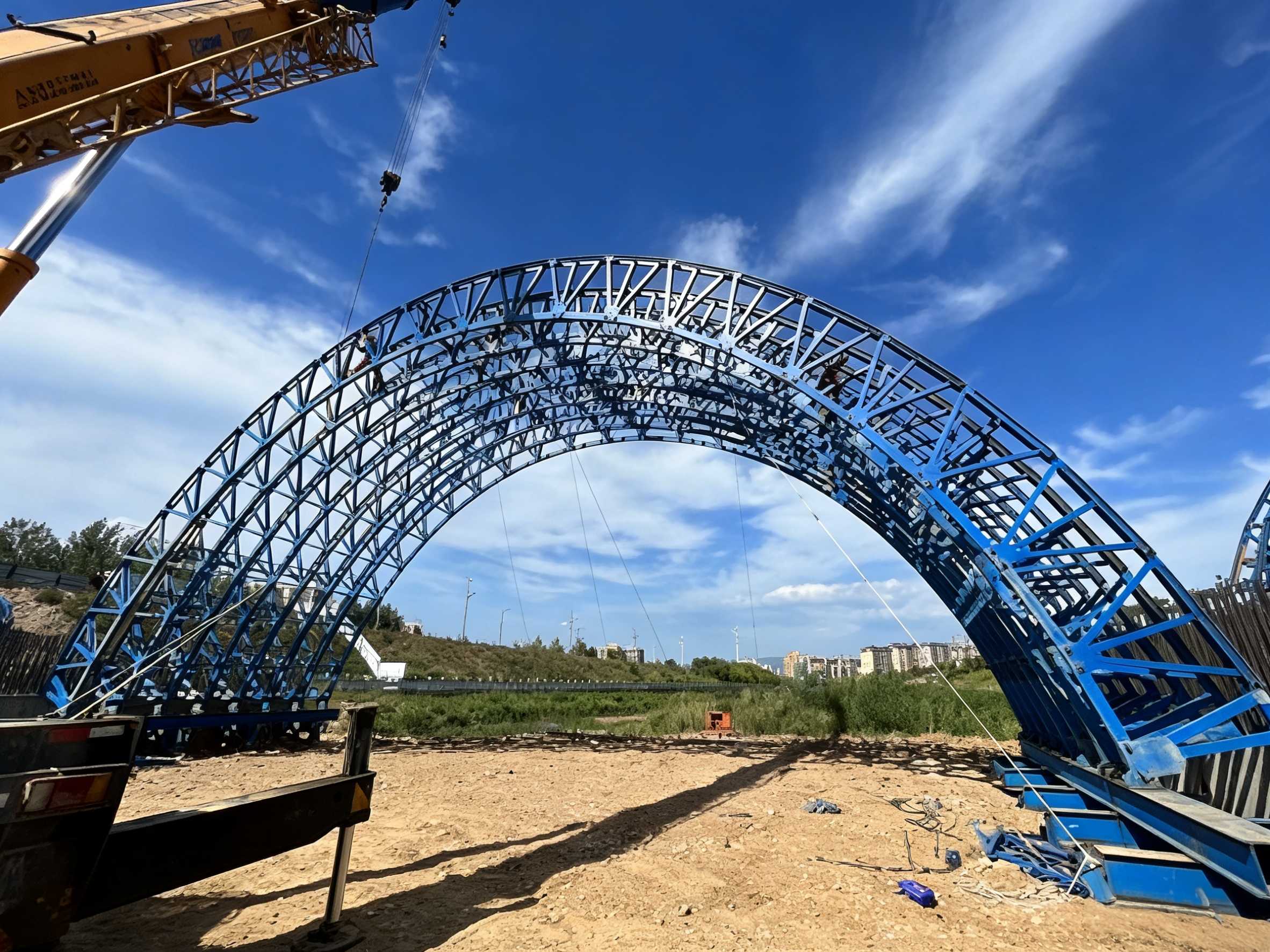 該技術(shù)以三角結(jié)構(gòu)優(yōu)化受力設(shè)計(jì),實(shí)現(xiàn)工廠標(biāo)準(zhǔn)化預(yù)制、現(xiàn)場(chǎng)模塊化拼裝,大幅減少現(xiàn)場(chǎng)作業(yè)量,且鋼拱架可循環(huán)利用,兼具安全性、高效性與綠色性。不僅有效破解了傳統(tǒng)中小跨徑拱橋拱架施工的行業(yè)難題,更推動(dòng)了中小跨徑拱橋施工向工業(yè)化、裝配化、綠色化轉(zhuǎn)型,為我國(guó)交通基礎(chǔ)設(shè)施建設(shè)高質(zhì)量發(fā)展提供了可復(fù)制、可推廣的技術(shù)方案。