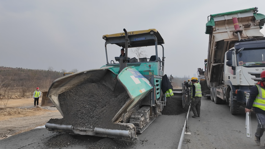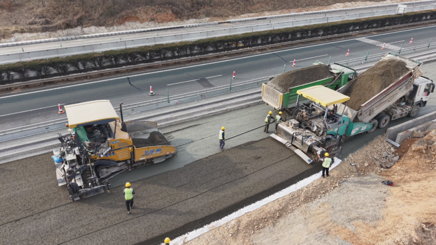1月21日,在聯投湖北路橋京港澳改擴建1標項目水穩攤鋪現場,只見大型攤鋪機緩緩前行,將水泥穩定碎石均勻鋪設在已準備好的路基上。壓路機緊隨其后,對鋪設好的路面進行壓實作業,確保水穩層的密實度和平整度達到最佳狀態。工人們各司其職,有的在檢查材料質量,有的在調整機械參數,整個施工現場井然有序,展現出了高超的專業技能和團隊協作精神?!盃幦〈汗澐偶偾鞍阉兴€攤鋪工作面全部完成,為節后復工打基礎,為沖刺2025年“四改八”通車奠定基礎。”該現場技術負責人王偉說。