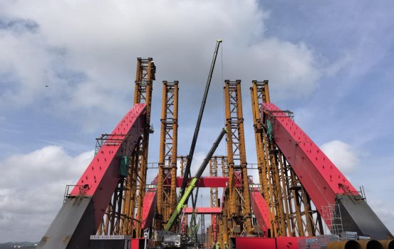 目前,水都二橋工程全橋下部結構、引橋上部混凝土主體結構和主橋主梁鋼結構全部完成,正在進行鋼拱肋拼裝、引橋附屬設施工作,項目計劃五月中旬前完成第三跨鋼拱肋提升工作,七月份左右完成全橋鋼拱肋安裝提升、主橋UHPC施工、附屬設施等工作。水都二橋建成后,將與水都大橋配合協調使用,對改善丹江口市交通環境,具有非常重要的意義。湖北路橋將加大資源投入,合理組織、精心安排,爭取水都二橋工程早日建成通車。