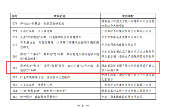 5月16日,中國施工企業管理協會公布了2024年“工程建設企業黨建工作優秀成果”的名單,湖北路橋京港澳改擴建工程1標項目成功獲評“工程建設企業黨建工作優秀二等成果”。