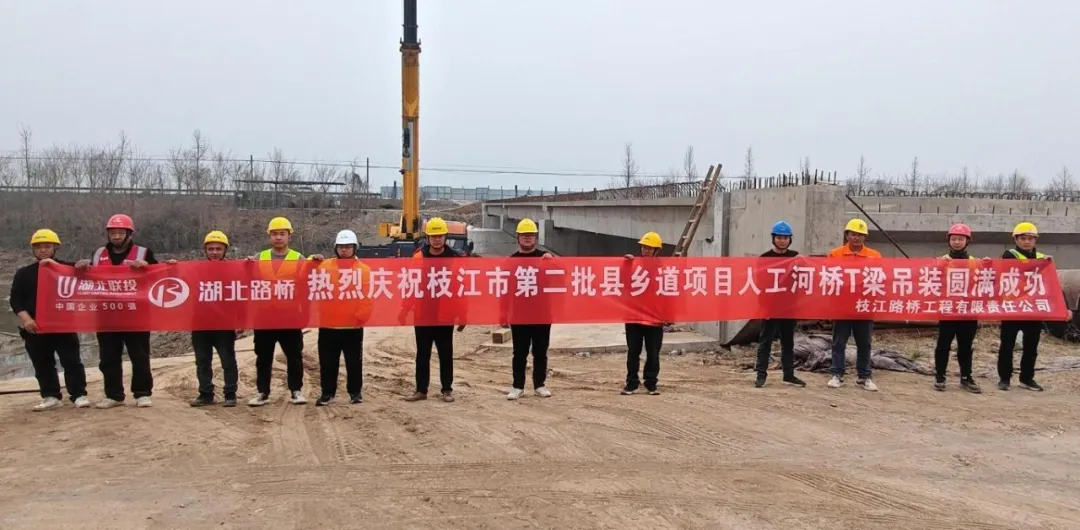 項目直擊丨枝江路橋第二批縣鄉道改造工程人工河橋T梁吊裝任務圓滿完成