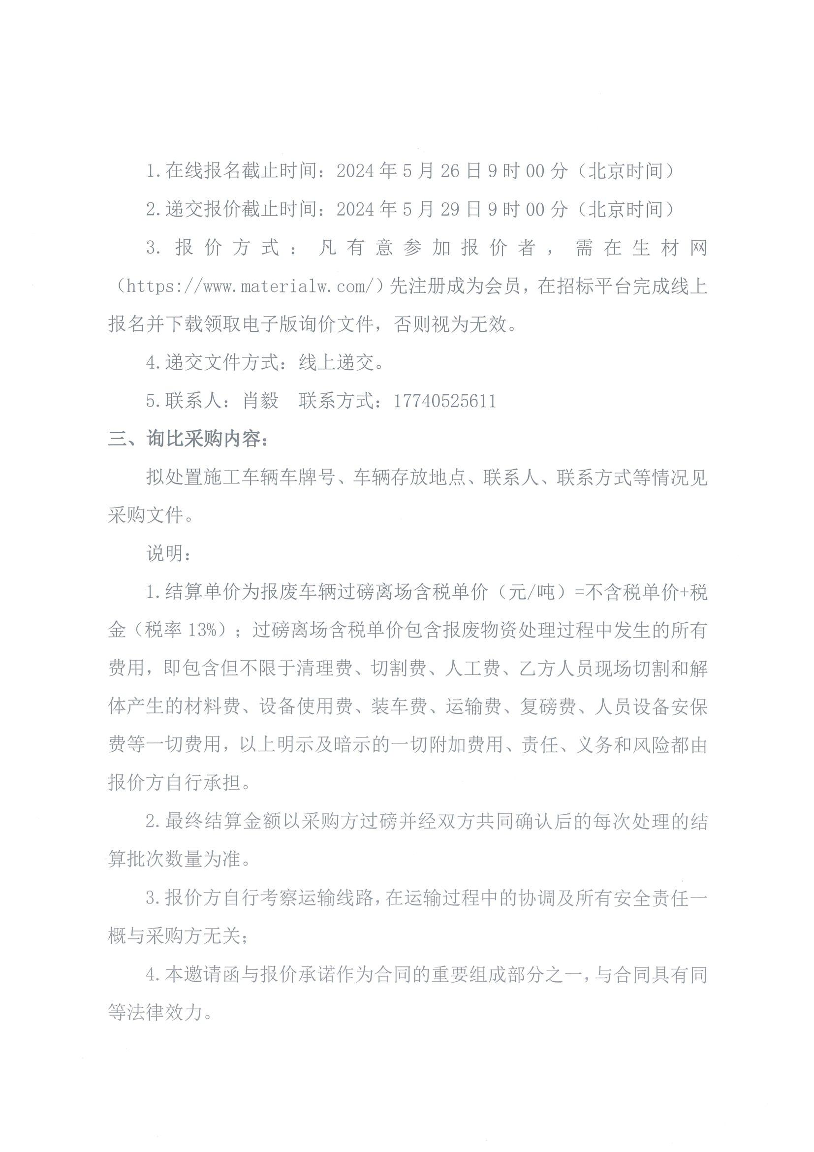 湖北省路橋集團(tuán)有限公司報(bào)廢車輛處置詢比采購(gòu)(第二次)公告